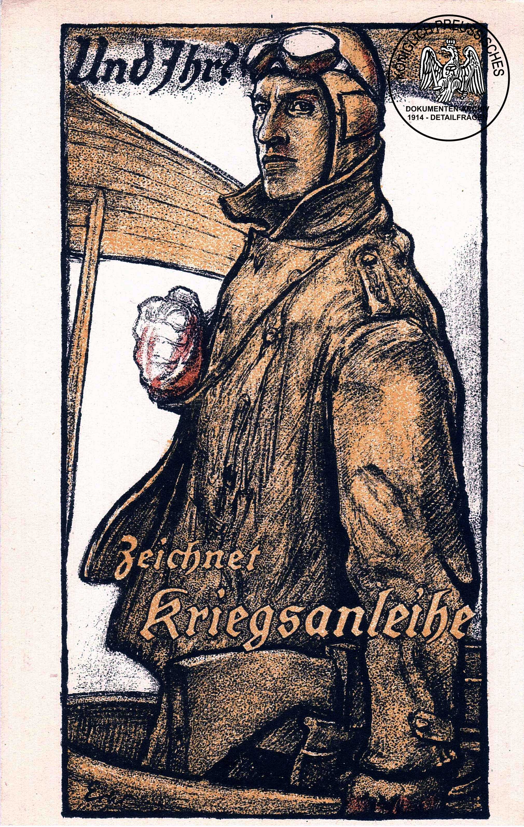 Diese Karte fordert zum Zeichnen von Kriegsanleihen auf,um die Finanzierung des Krieges sicher zu stellen. |