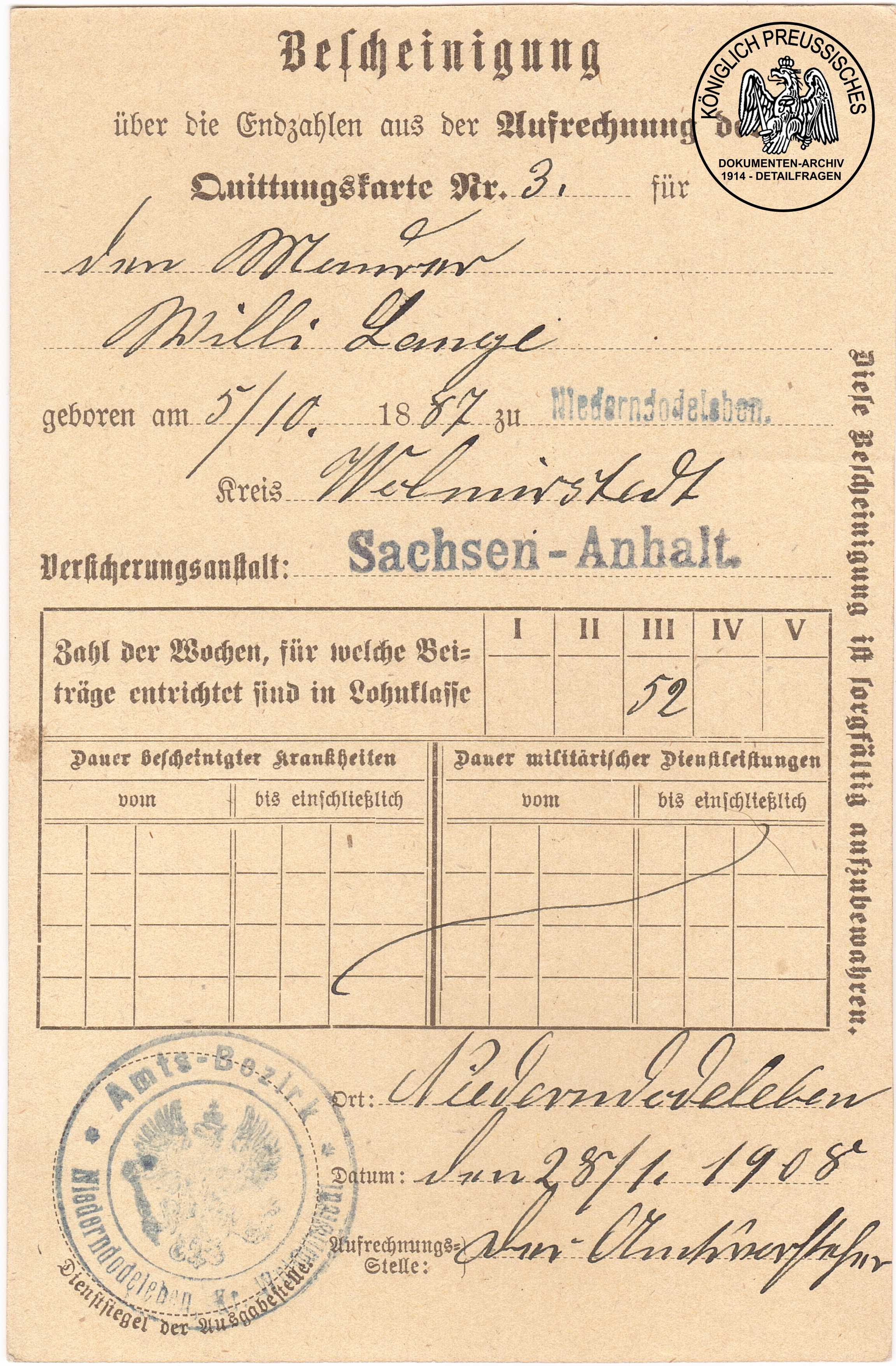 SozialwesenRenterversicherungZahlungenQuittungSachsen-AnhaltWilli Lange |