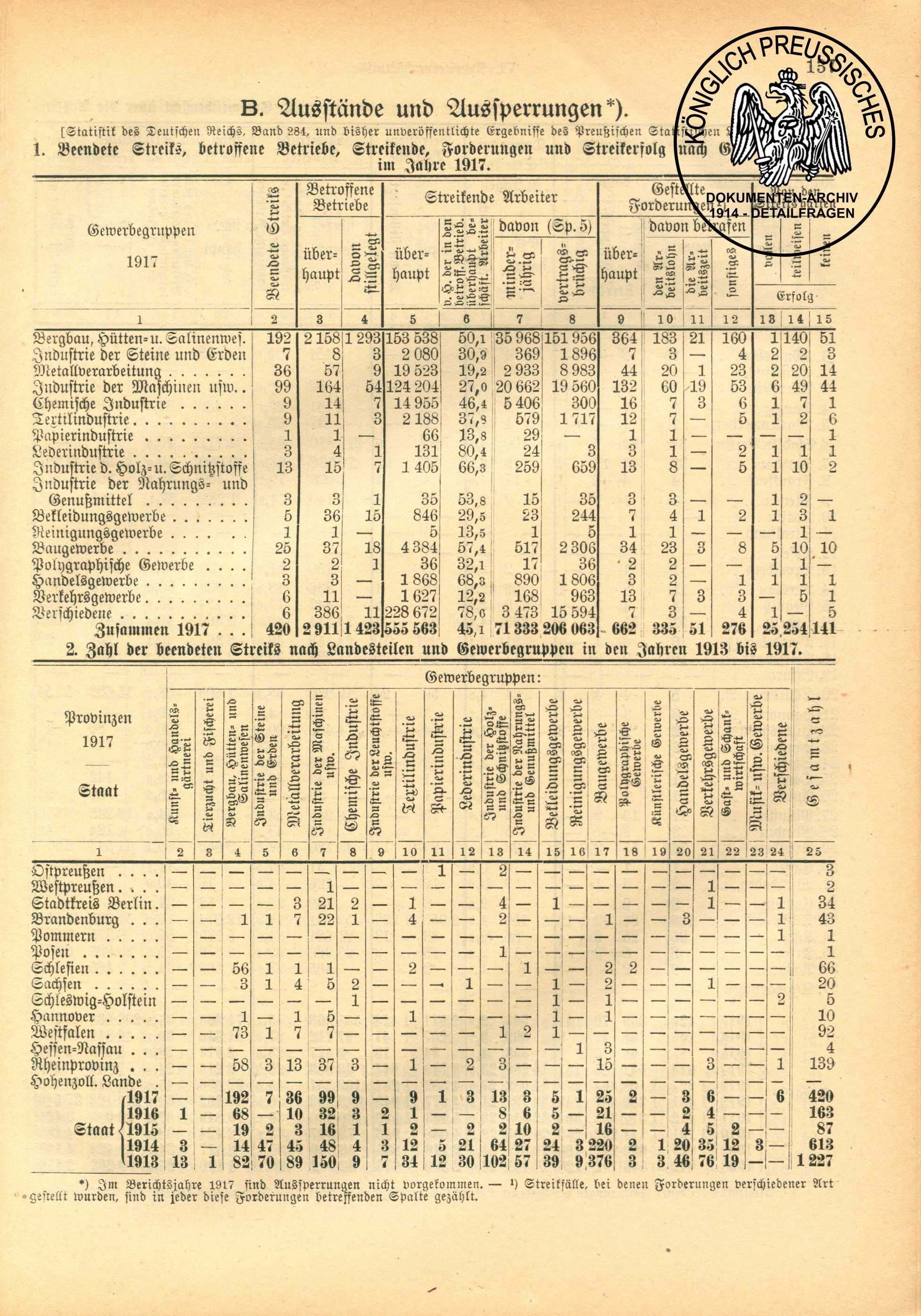 StatistikPreussenVI. ArbeitsverhältnisseAusständeStreiks |