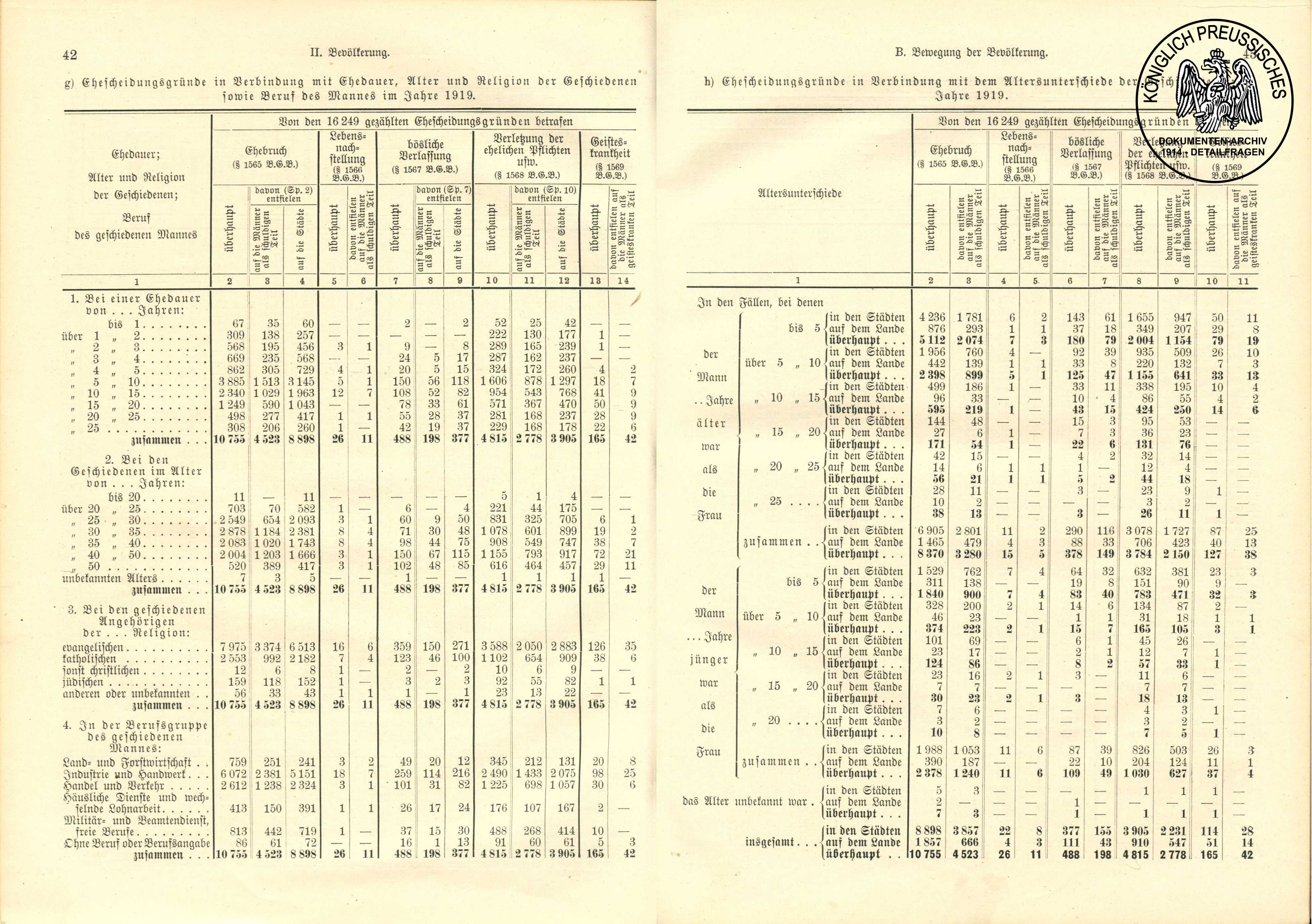 StatistikFreistaatPreussenII. BevölkerungB. BevölkerungsentwicklungEhescheidungen |