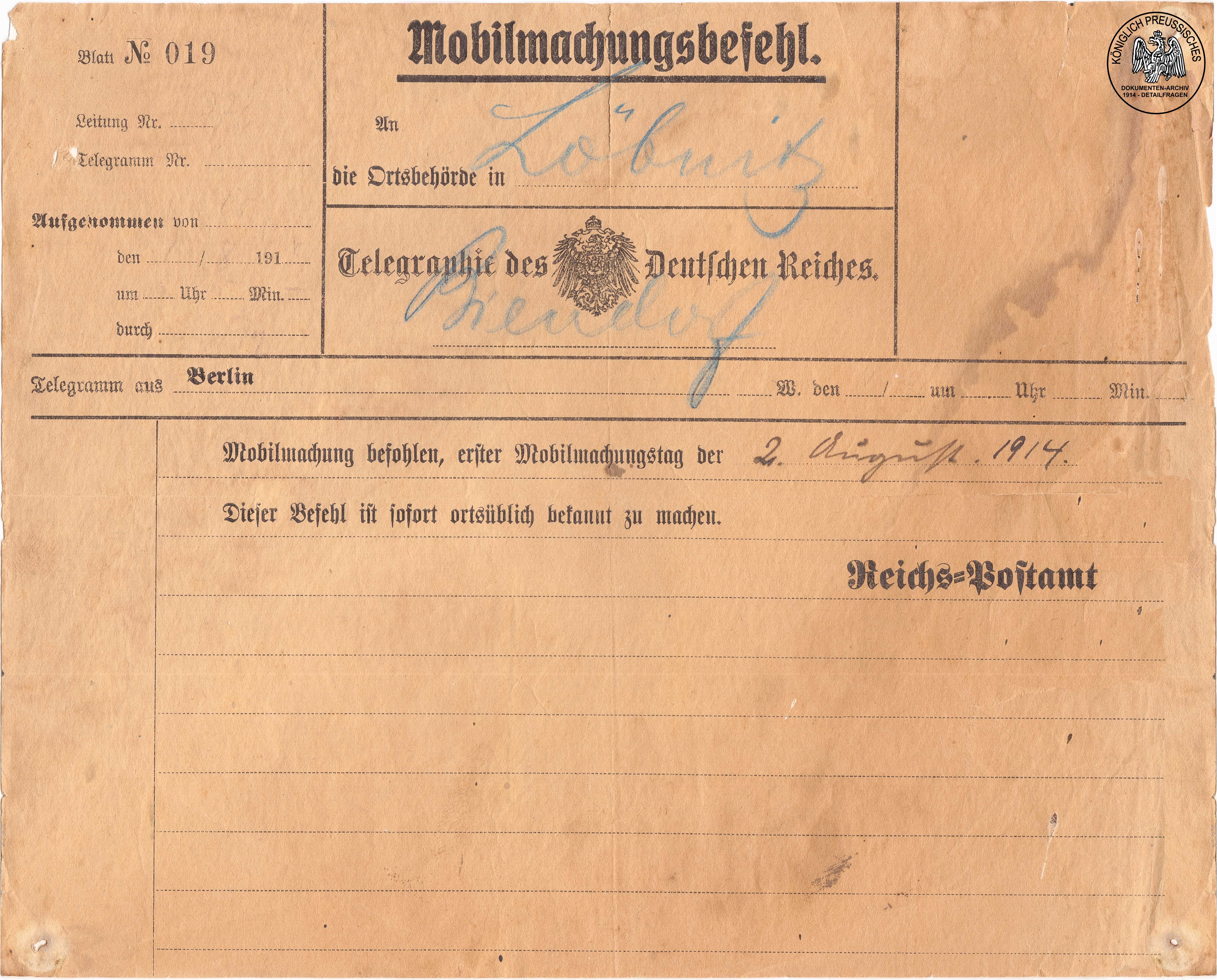 Die deutsche Mobilmachung steht unmittelbar bevor. |