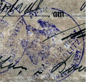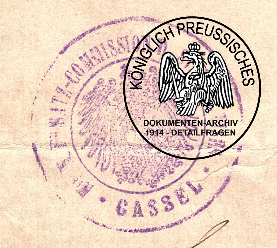 Siegel der Königlich Preussischen Ersatzkommisiondes Stadtkreises Cassel(aus einem Landsturmschein) |