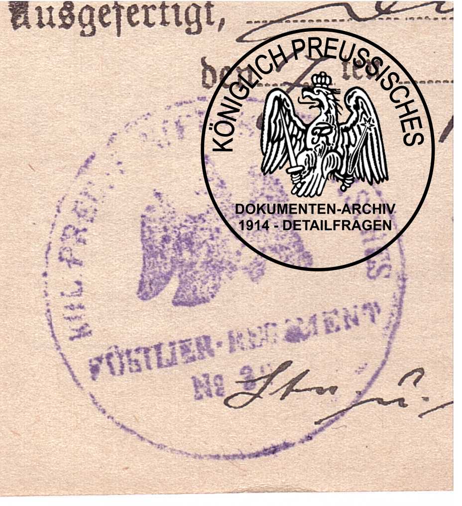 Siegel der Koeniglich Preussischen 1. Thuering. Feldartillerie Regiment No 19Ersatz-Abteilung(aus einem Ausweis zur Stelle als Fahnenjunker) |