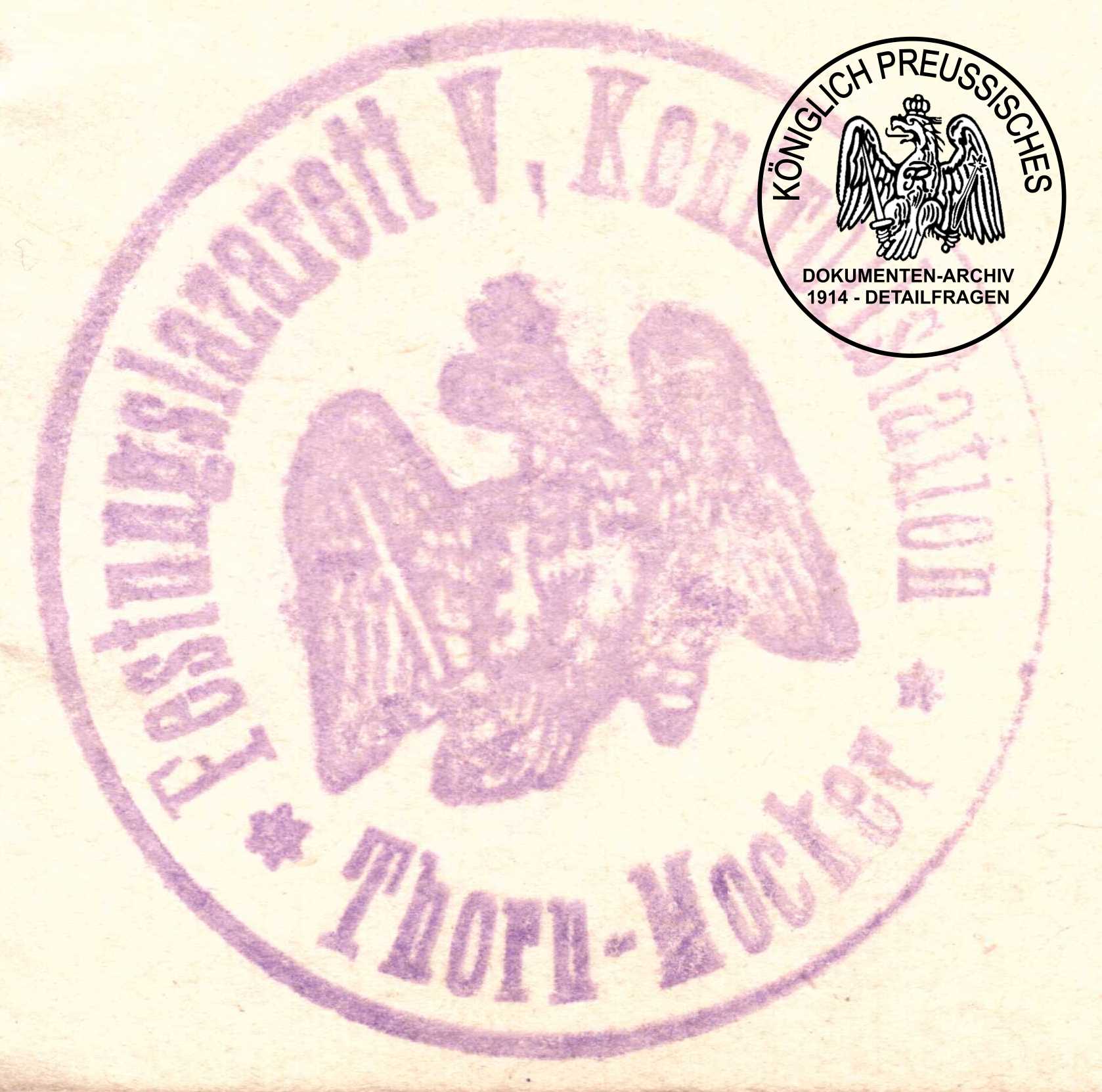 Siegel der Kontrollstation des Festungslazarett VThorn-Mockern(aus einem Soldbuch) |