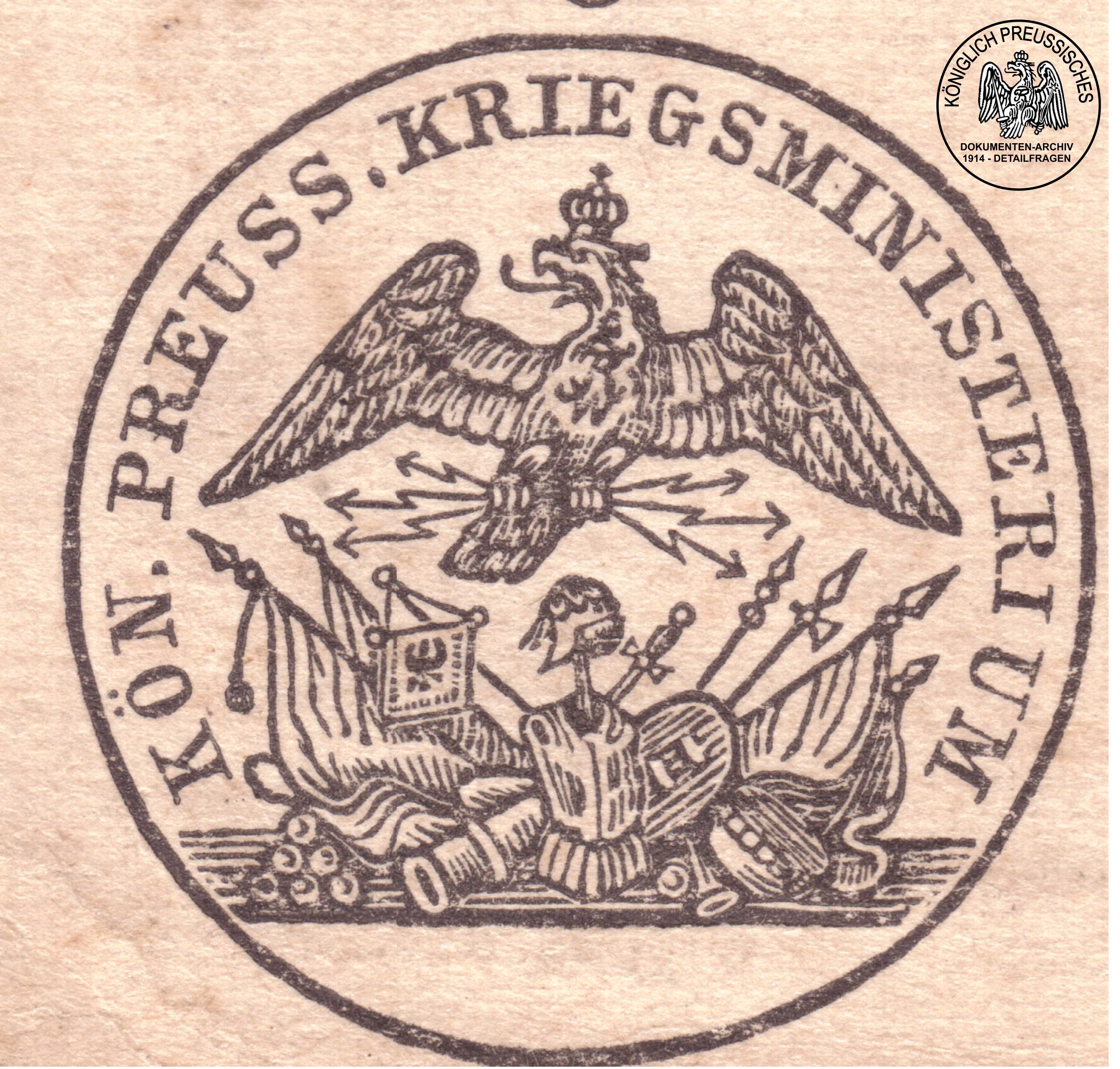 Siegel des Königl. Preussischen Kriegsministeriums(aus einem Ausweis zum Neutralitätskennzeichen) |