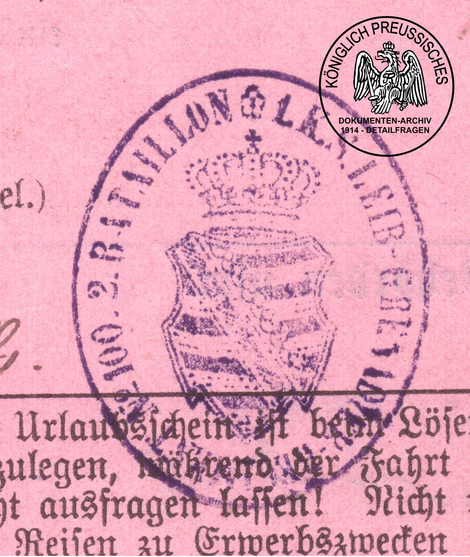 Stempel des Landsturm Ersatzbataillion No 2Hamburg(aus einem Urlaubsschein |