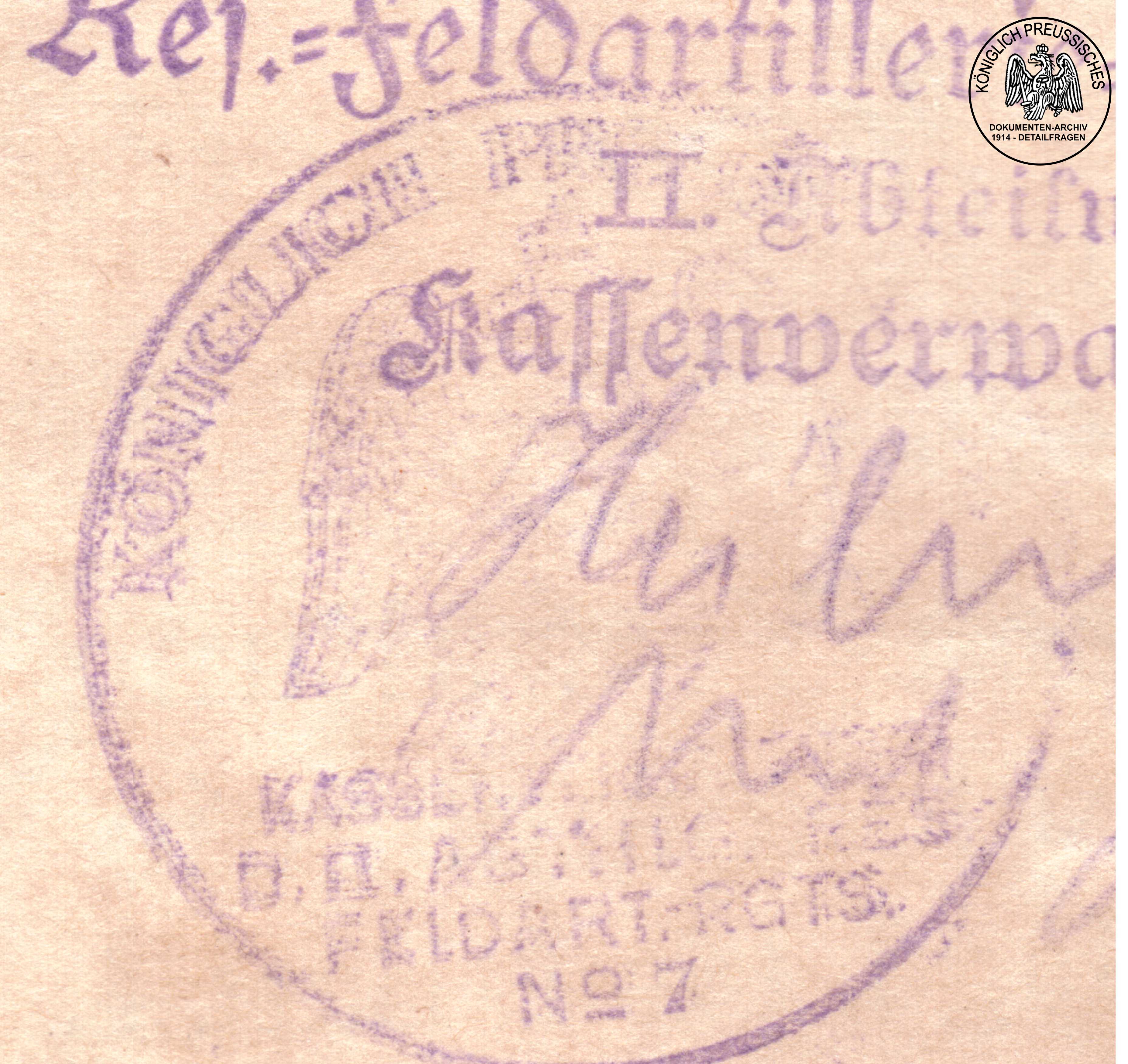 KassenverwaltungII AbteilungRes. FeldartillerieRegiment No 7 |