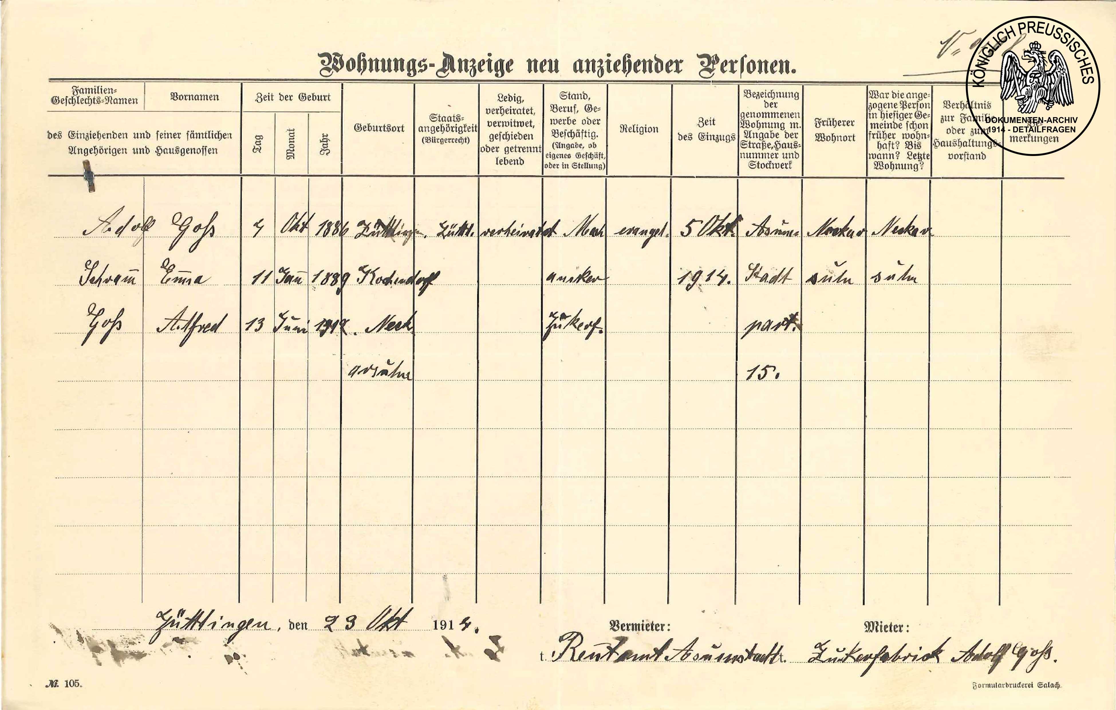 Standesbeamten Johann Theis. |