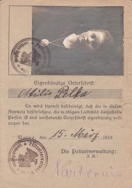 (2) Innenseite des Passes für Helene Zukowska; hier finden sich ein Bild der Paßinhaberin sowie ein der Fingerabdruck (!)