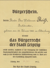 Arbeitszeugnis der Firma Waldes & Ko. (Dresden) für den Werkzeug-schlosser Rheinhold Thielemann der Aufgrund seiner Einberufungzum Heeresdienst zum 01.08.1914 entlassen wurde. |