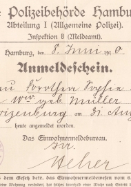 Dienstbuch für Johanna Hamann, in der dem die Anstellungsverhältnissefestgehalten wurden.Ausgestellt wurde das Dienstbuch von der Polizeibehörde Hamburg;interessant die Auszüge aus den zugrundeliegenden Gesetzen. |