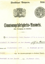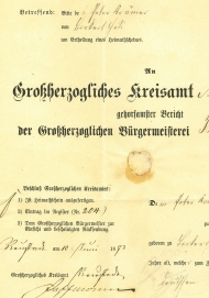 Bestallung für den Landwirt Georg Jacob als beeidigter Schätzer (Sachverständiger) für Grundstücke und Immobilien. Im Anhang der Urkunde befinden sich die recht- lichen Grundlagen und Vorschriften für die Tätig- keit als Schätzer. Das "Formular" selber scheint noch auch der Zeit des Königreichs Bayern zu stammen, denn die Republikanisierung erfolgte durch Streichung des "k" vor dem "Amtsgericht". |