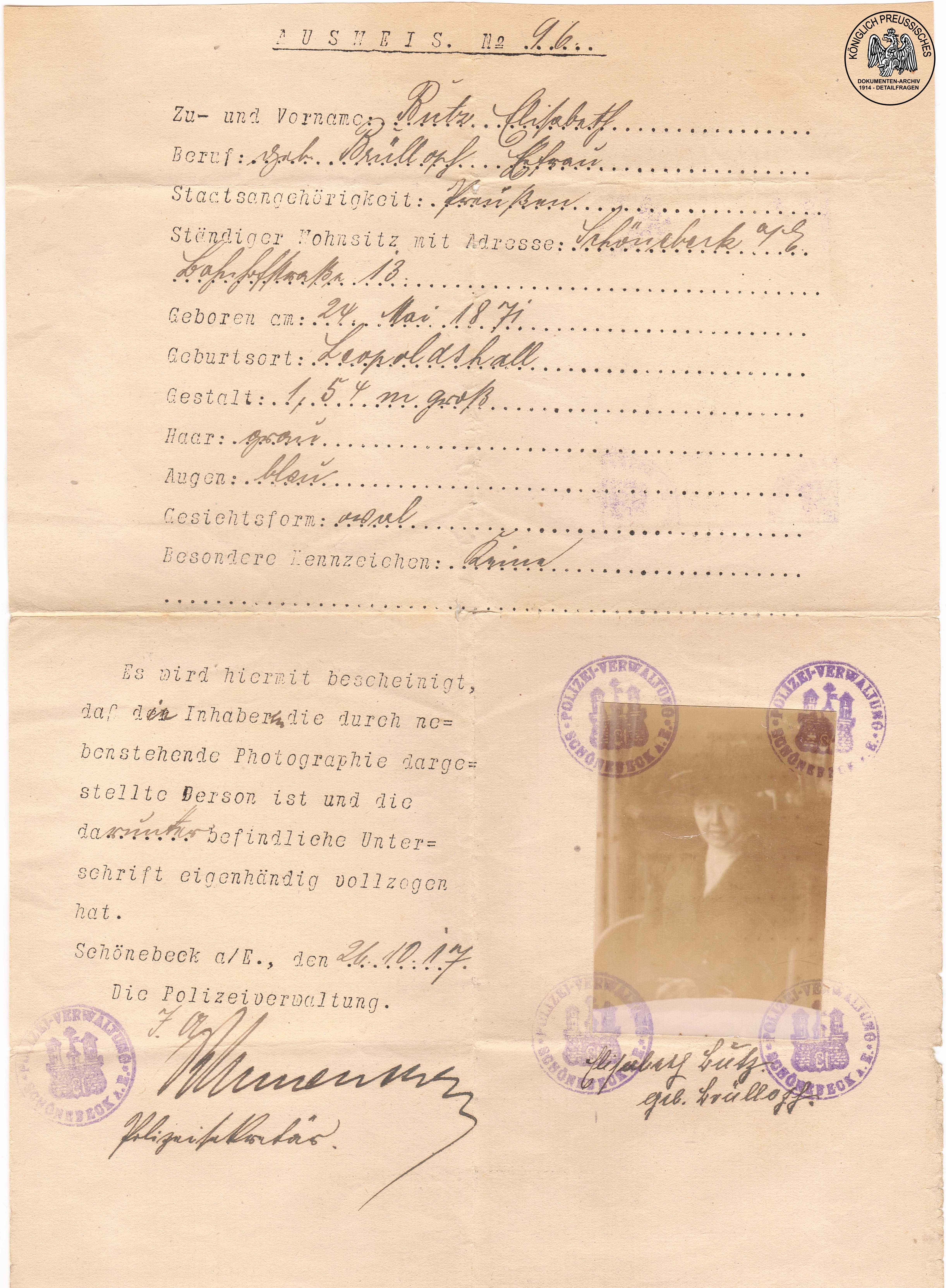 (1) Innenseite des Passes für Helene Zukowska; hier finden