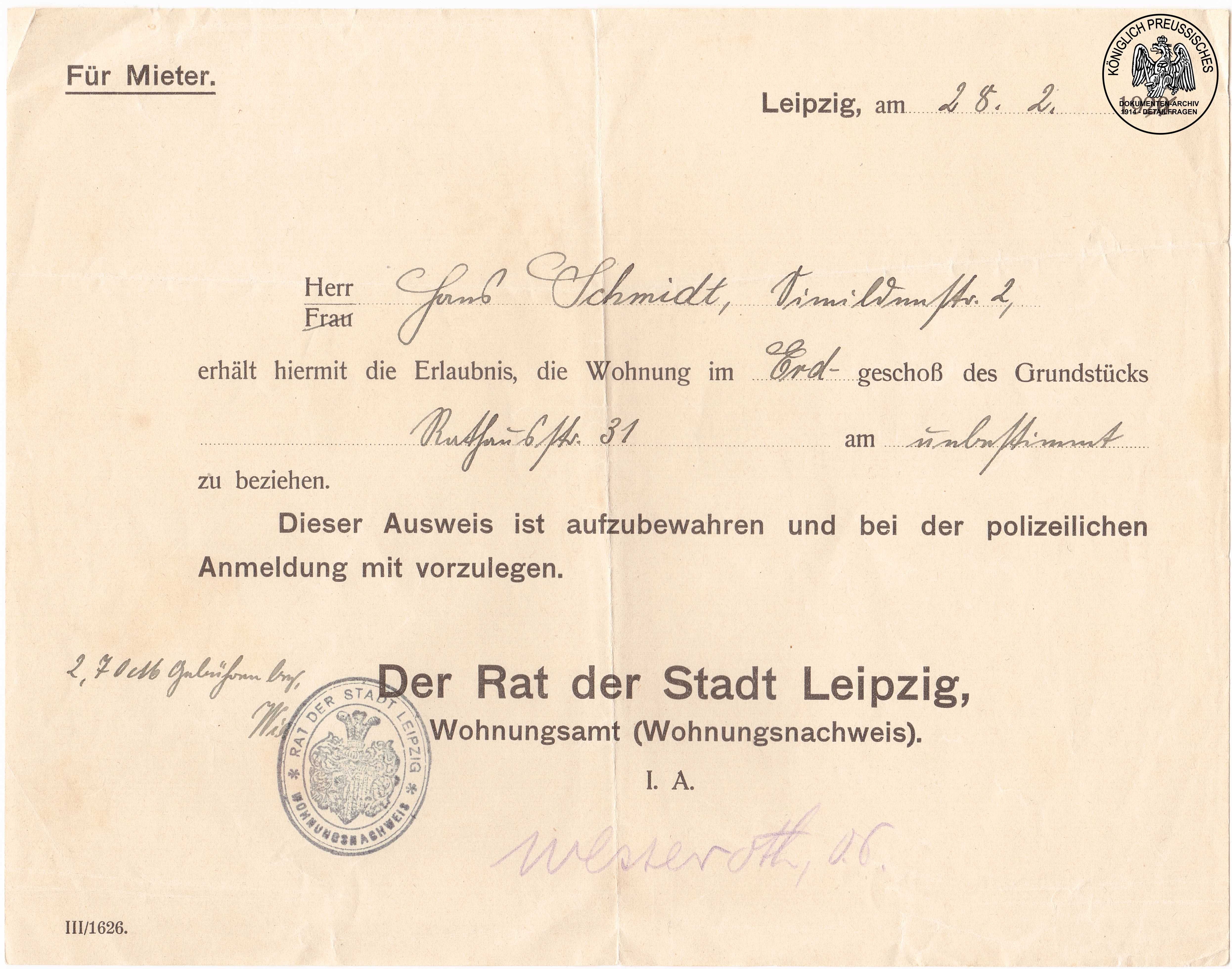 Entlassungsschein für den Arbeiter Paul Bendel. |